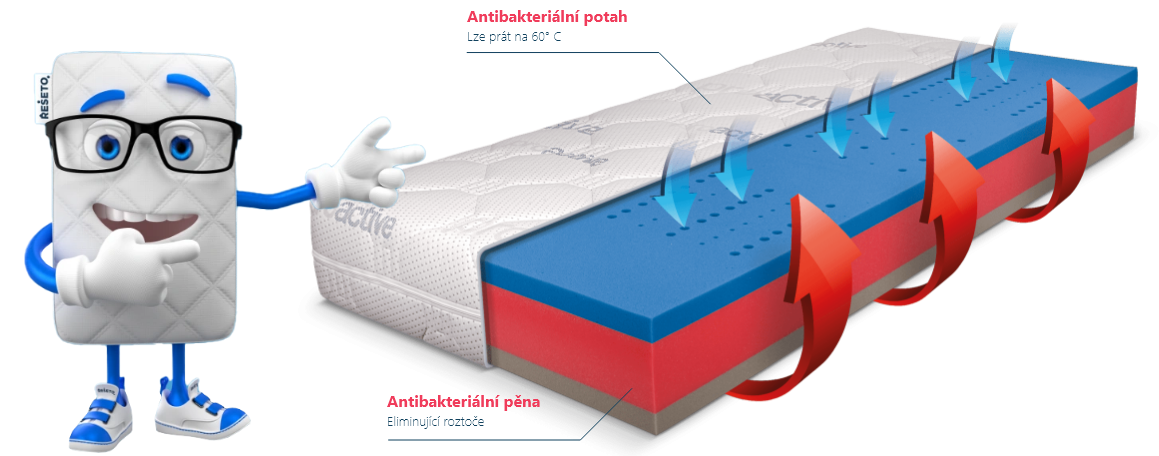 Matrace proděravěná technologií ŘEŠETO je maximálně prodyšná, splňuje nejnáročnější požadavky na hygienu a prodlužuje její životnost. Otvory jádro matrace lépe odvětrávají, takže nedochází k přehřívání lidského organismu. Díky prodyšné matraci ŘEŠETO dochází k eliminaci vlhkosti a prostředí na lůžku je dokonale hygienické.