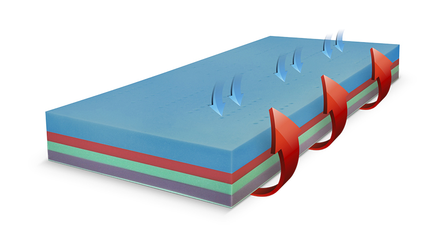 • unikátní kombinace VISCO a HYPERSOFT pěn s otevřenou strukturou