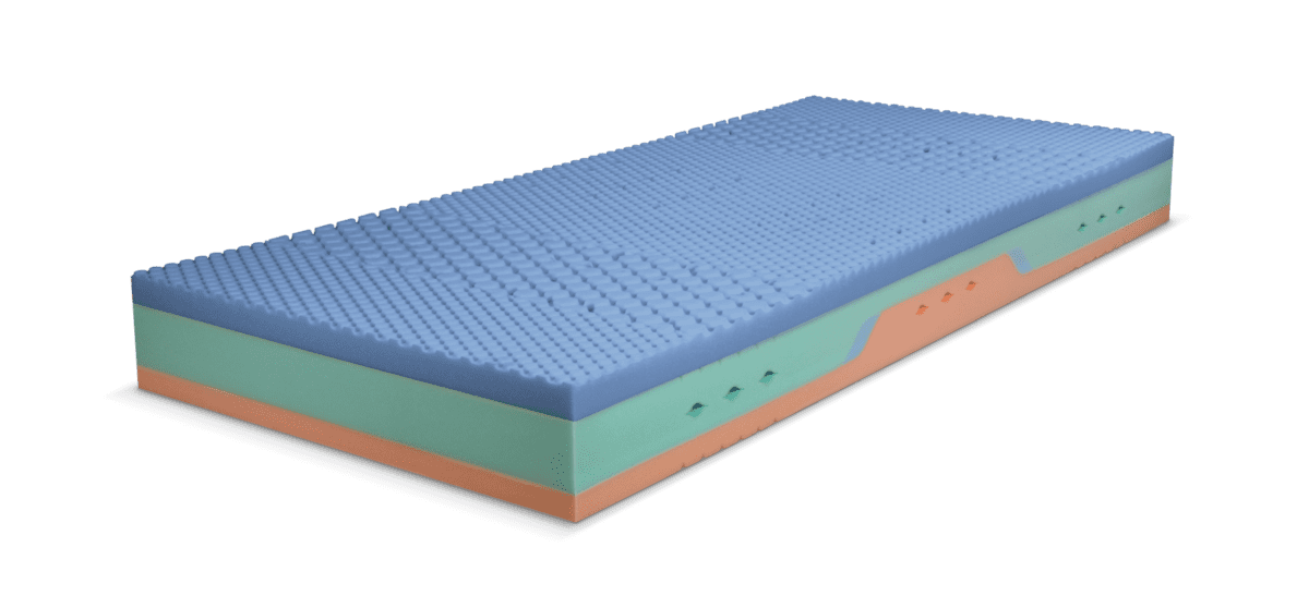 Sedmi zónová matrace s povrchovou i jádrovou profilací vytváří výborné podmínky jak pro ventilaci lůžka, tak pro optimální tvarování matrace vůči tělu spícího člověka. Ventilační schopnosti ve spojení se schopností CELLPURU absorbovat zvýšenou vlhkost jsou zárukou klidného spánku bez pocitu pocení. Matrace je dvoutuhostní a díky vysokým objemovým hmotnostem CELLPUR (5235,5245) pěny, dává uživateli možnost volby povrchové měkkosti bez vlivu na celkovou nosnost matrace. Matrace je zónová a splňuje všechny ergonomické požadavky. Matrace je vhodná na lamelový pevný nebo polohovací rošt. Celková výška matrace v potahu je 18 cm.
