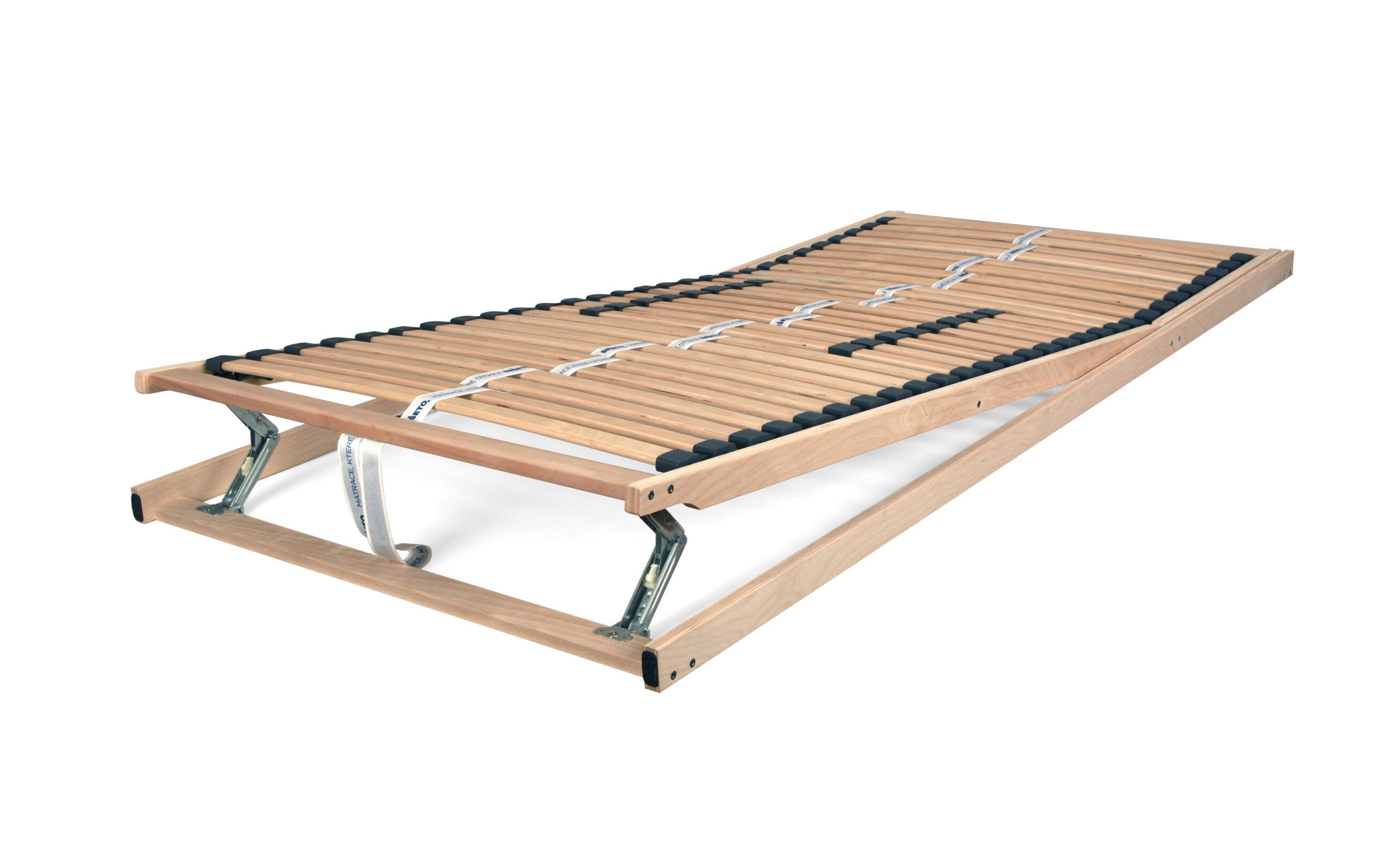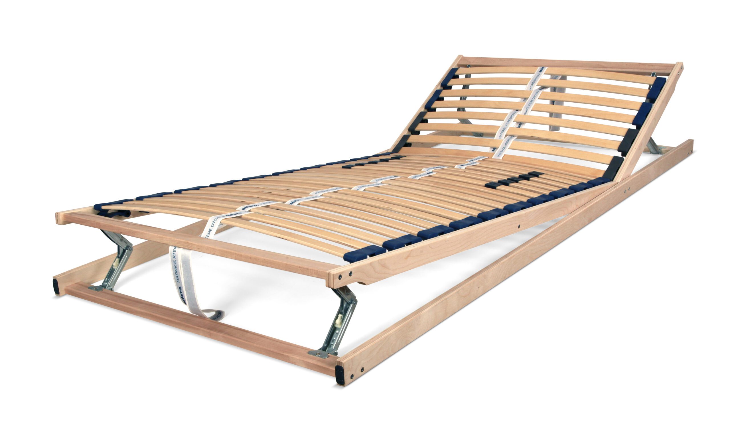 Předpjaté lamely uložené v kaučukových pouzdrech zajišťují optimální pružnost a oporu matrace. Středový popruh rovnoměrně rozkládá zatížení pro vyšší stabilitu. V bederní oblasti lze nastavit tuhost dle požadavků uživatele. Rám z vrstveného dřeva zaručuje vysokou pevnost i životnost.