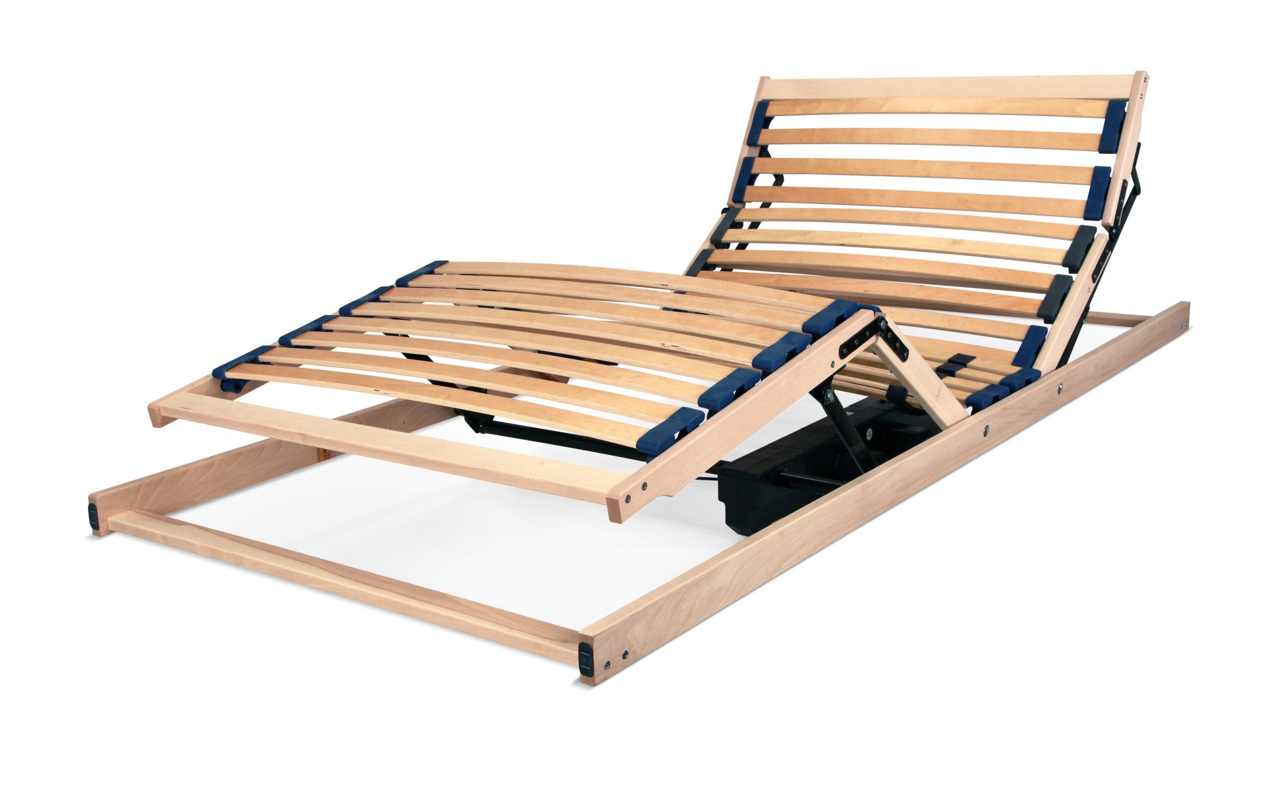 Předpjaté lamely uložené v kaučukových pouzdrech zajišťují optimální pružnost a oporu matrace. Středový popruh rovnoměrně rozkládá zatížení pro vyšší stabilitu. V bederní oblasti lze nastavit tuhost dle požadavků uživatele. Rám z vrstveného dřeva zaručuje vysokou pevnost i životnost.